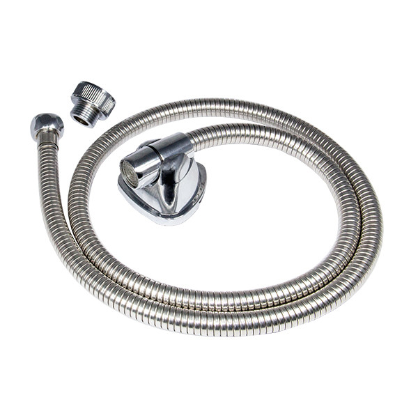 جنس شلنگ استیل با بافت ریز میباشد و قطعات بکار رفته از جمله مهره و کونیک از جنس برنج با آبکاری نیکل میباشد و دارای آبفشان کاهنده مصرف آب میباشد .