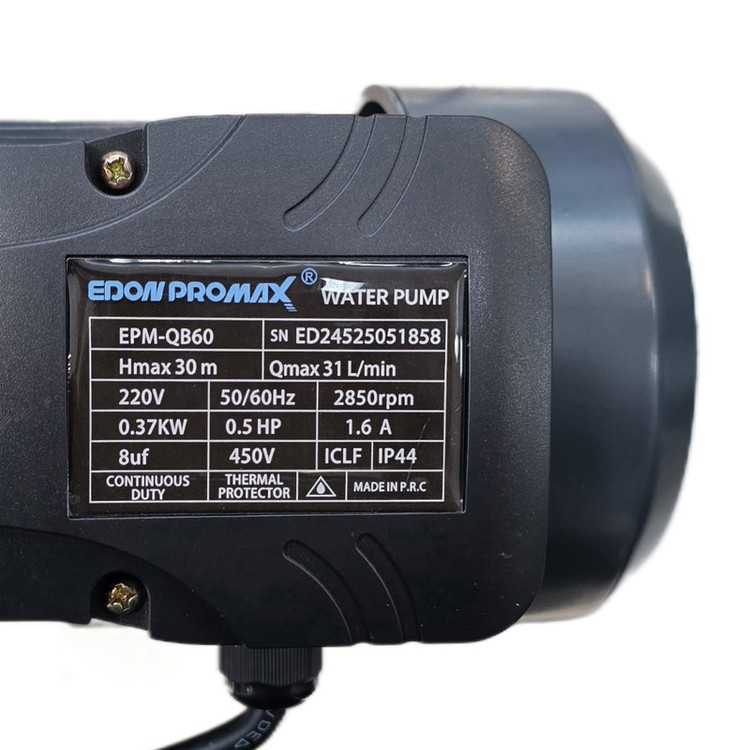 پمپ آب ادون مدل EPM-QB60 از محصولات کاربردی و اقتصادی برند EDON است که برای افزایش فشار آب در مصارف خانگی و نیمه صنعتی طراحی شده است. این پمپ با توان ۳۷۰ وات (۰.۵ اسب بخار) عملکردی قدرتمند و مطمئن دارد و میتواند آب را تا ارتفاع ۳۰ متر پمپاژ کند.