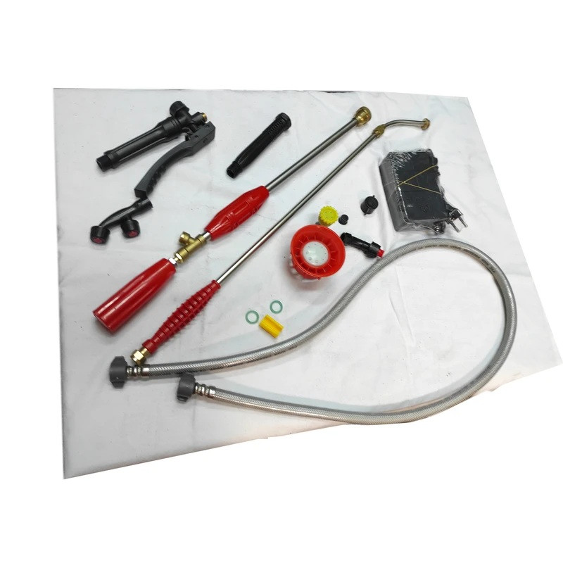 این سمپاش دارارا دو عدد لانس برنجی کابل شارژ سری ها مختلف برای سمپاشی میباشد - دارای چند مدل نازل اضافی، دارای بند کوله ای، دارای واشرهای یدکی - شلنگ و دسته لانس باکیفیت، دارای صافی و دفترچه راهنما - دارای شارژر و.....