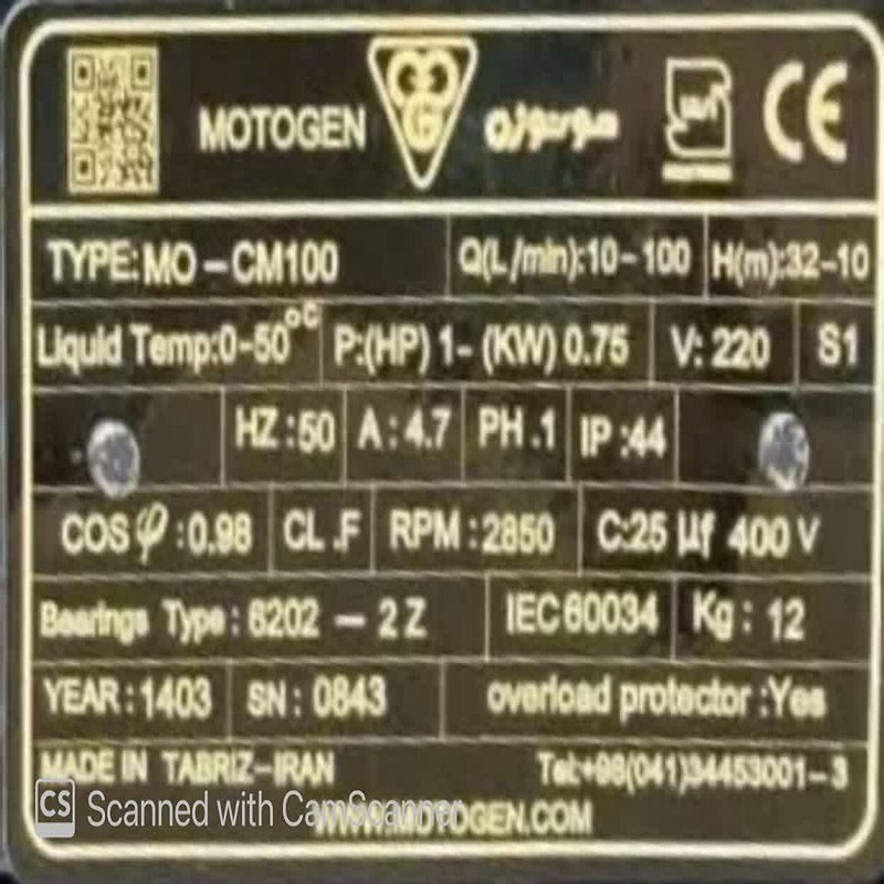 کاربرد: مکش آبهای آلوده , آبیاری , افزایش فشار آب , انتقال مایعات