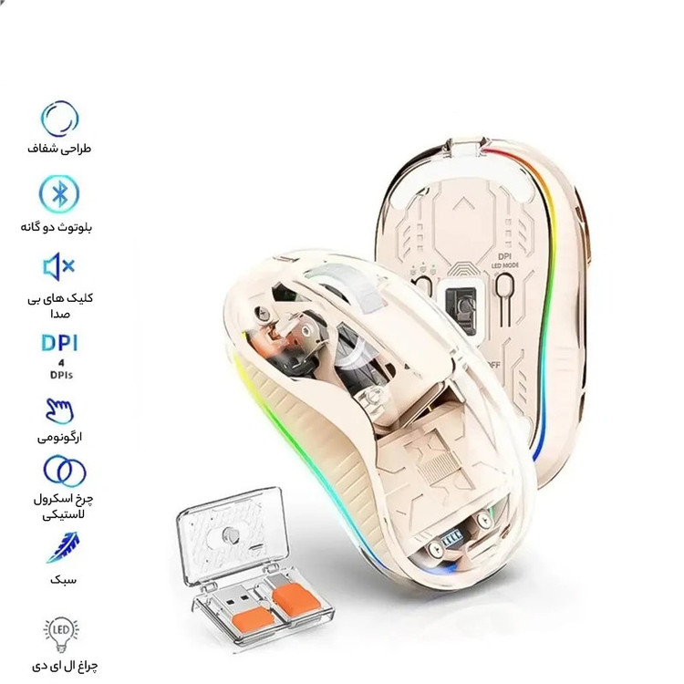ماوس بی سیم گرین لاین با باتری قدرتمند 400 میلی آمپر ساعتی، استفاده طولانی مدت را بدون شارژ مجدد مداوم برای شما فراهم می کند. شما میتوانید داخل ماوس را ببینید و طراحی شیک و شفاف آن به میز کار شما زیبایی میبخشد. ماوس گرین لاین نیاز شما را برای انجام چند کار در لپ تاپ، تبلت یا گوشی هوشمند برآورده می کند، به علاوه سنسور ماوس بی سیم گرین لاین مدل GL-MS2 از اپتیکال یا همان نوری است. یکی دیگر از قابلیت های ماوس بی سیم گرین لاین تحرک با برد بلوتوث تا 10 متر را برای شما فراهم می کند. این ماوس برای حرفهایها، دانش آموزان یا کاربران عادی به طور مساوی مناسب است و به راحتی میتواند به 3 دستگاه به طور همزمان متصل شود و «حالت کنفرانس» (Attend Mode) یکی از ویژگیهای کاربردی این ماوس است که به شما امکان میدهد به راحتی بین اتصالات دانگل USB-A/Type-C، بلوتوث 1 و بلوتوث 2 سوییچ کنید. ماوس بی سیم گرین لاین مدل GL-MS2 به لطف طیف وسیعی از گزینههای اتصال موجودی که دارد، مانند بیسیم و بلوتوث، میتواند بدون هیچ مشکلی به دستگاههای شما از جمله دستگاههایی که دارای سیستم عامل اندروید، ویندوز و مک هستند متصل شود و همچنین شما می توانید از طریق درگاه تعبیه شده این ماوس را شارژ کنید و دیگر نیازی به خرید باتری نخواهید داشت. طول عمر این ماوس 3 میلیون کلیک و دقت 800، 1200، 1600، 2400 DPI را برای شما فراهم می کند و آن را برای فعالیت هایی که نیاز به توجه به جزئیات دارند ایده آل می کند.