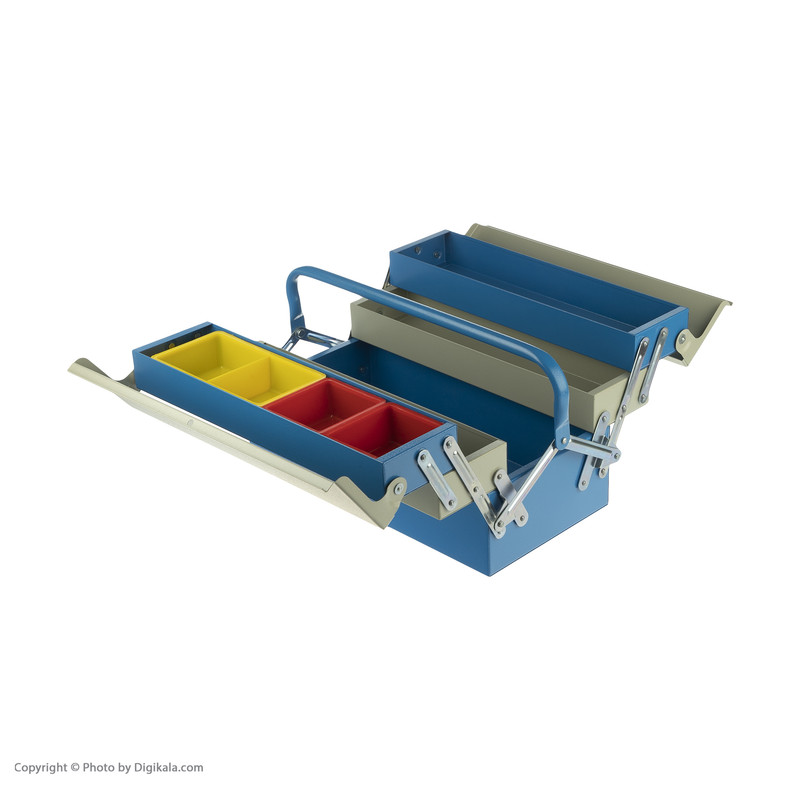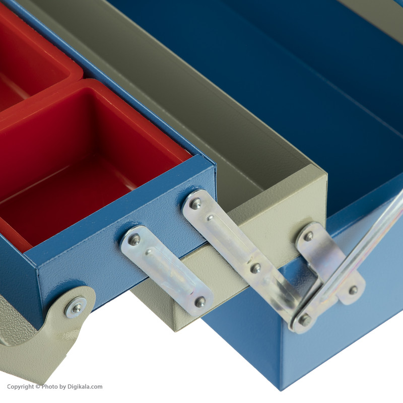 - 4 عدد نیم طبقه - دارای 4 محفظه پیچ و مهره در یک نیم طبقه - یک محفظه اصلی - پرچ های فولادی - رنگ استاتیک - اتوماتیک (با فشار دادن دسته به سمت پایین جعبه باز می شود و با بالا آوردن جعبه بسته می شود)