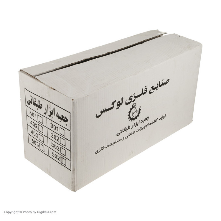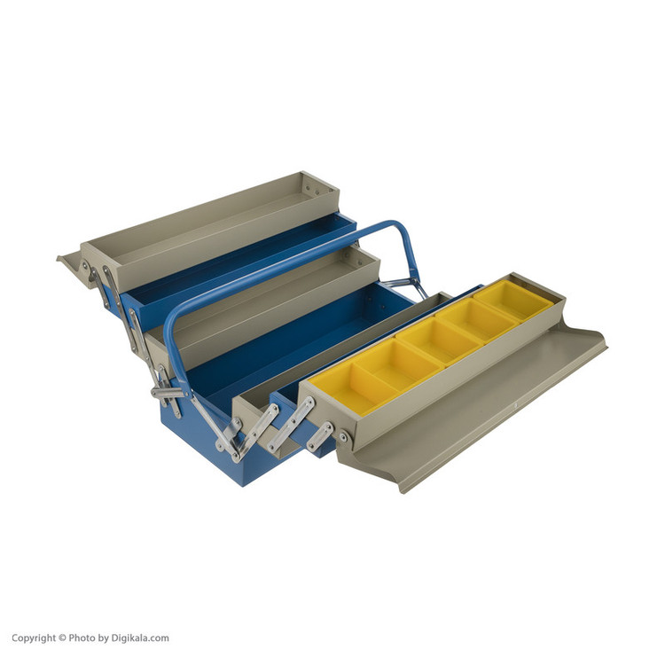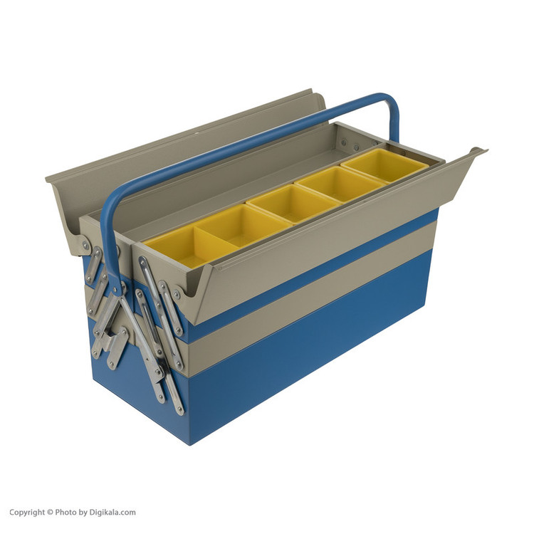 - 6 عدد نیم طبقه - دارای 5 عدد محفظه پیچ و مهره در یک نیم طبقه - یک محفظه اصلی - پرچ های فولادی - رنگ استاتیک - باز و بستن اتوماتیک (با فشار دادن دسته به سمت پایین جعبه باز می شود و با بالا آوردن جعبه بسته می شود)