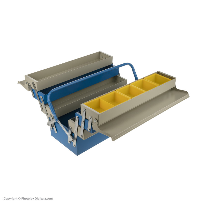 - 6 عدد نیم طبقه - دارای 5 عدد محفظه پیچ و مهره در یک نیم طبقه - یک محفظه اصلی - پرچ های فولادی - رنگ استاتیک - باز و بستن اتوماتیک (با فشار دادن دسته به سمت پایین جعبه باز می شود و با بالا آوردن جعبه بسته می شود)