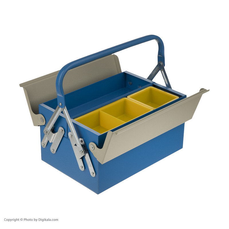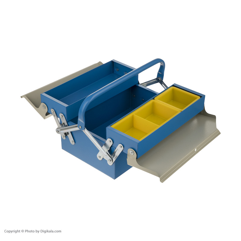 - 2 عدد نیم طبقه - دارای 3 عدد محفظه پیچ و مهره در یک نیم طبقه - یک محفظه اصلی - پرچ های فولادی - رنگ استاتیک - باز و بستن اتوماتیک (با فشار دادن دسته به سمت پایین جعبه باز می شود و با بالا آوردن جعبه بسته می شود)