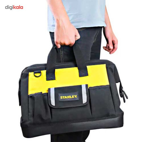 کیف ابزار فوق محصولی با کیفیت از شرکت «استنلی» (Stanley) است. این کیف ابزار برزنتی مدل (516126) نام دارد و برای نگهداری و حمل ابزار بسیار مفید و کارامد است. این کیف کمتر از یک کیلوگرم وزن دارد و ابعاد آن 45 × 23.5 × 27.5 سانتیمتر است. این کیف فضای مناسبی را در اختیار کاربر قرار میدهد و دارای 6 جیب خارجی و 4 جیب داخلی است. این جیبها در کنار قسمت اصلی کیف، 11 محفظه را در اختیار کاربر قرار میدهند. برزنت به کار رفته در ساخت این کیف مانع از تاشدگی و چروکیدگی کیف میشود. شرکت استنلی برای جلوگیری از سوراخ شدن و پارگی کف کیف در اثر فشار از کفی پلاستیکی مقاومی استفاده کرده است. برای حمل این کیف میتوانید از دسته یا بند دوشی آن استفاده کنید. اگر میخواهید ابزارهایتان به شکلی مرتب و منظم قرار گرفته و دسترسی به آنها در کوتاهترین زمان ممکن صورت پذیرد، محصول فوق کمک زیادی به شما خواهد کرد.