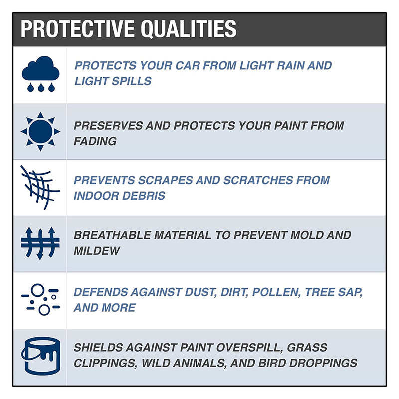 کاملا ضد آب دارای کیف و کاور به همراه یک عدد پرده پارک آفتابگیر داری جای آیینه لایه خارجی با دوام با پوشش ضد خش نرم دارای منافذ هوا جهت در جریان بودن هوا زیر چادر