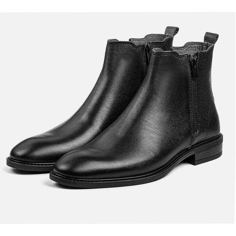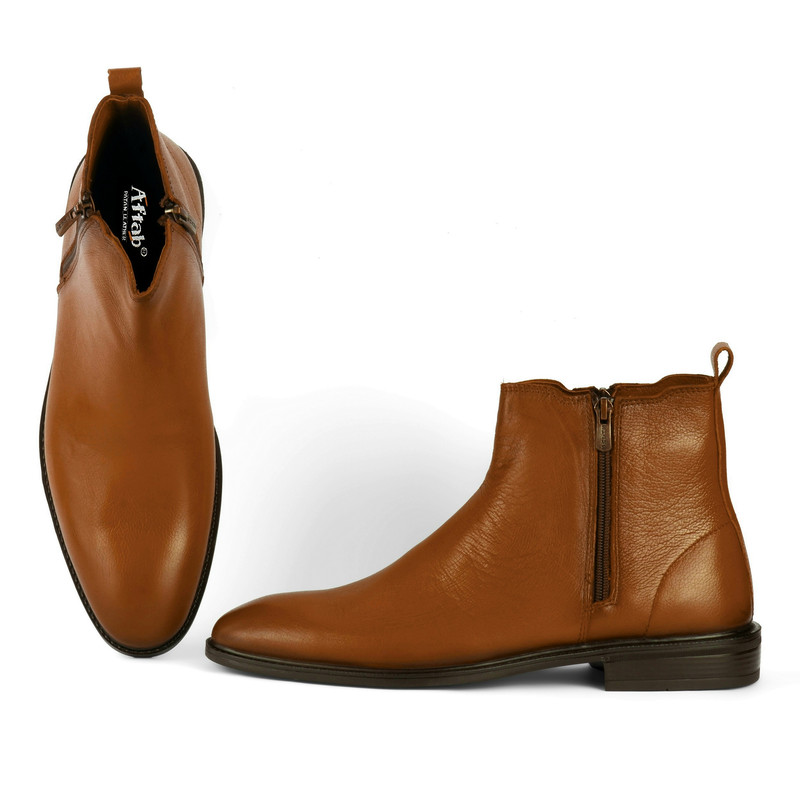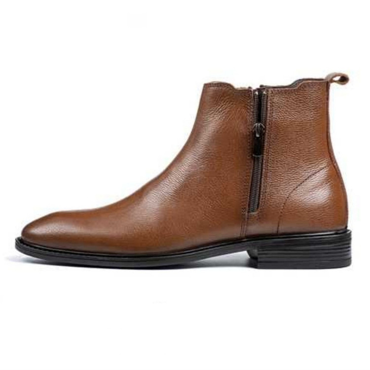 جنس رویه: چرم طبیعی گاوی جنس زیره: لاستیک – مقاوم در برابر سایش و منعطف جنس کفی: چرم طبیعی بُزی (ضد ترک) وزن تک لنگه: 455 گرم ( 25± ) این کفش دارای زیپ در کناره داخلی و خارجی است.