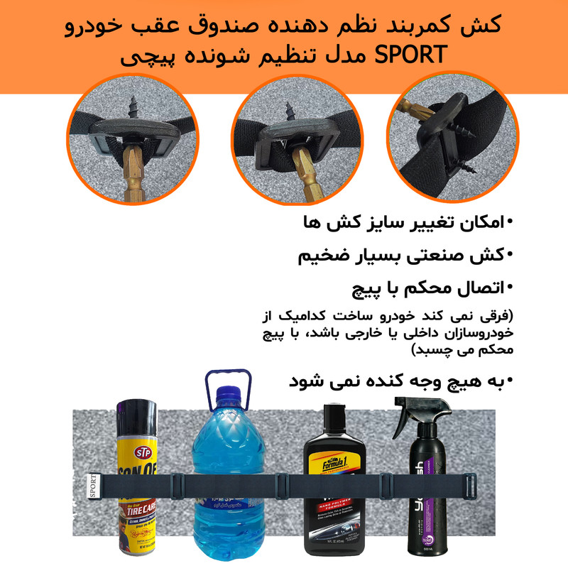 درج لوگوی اسپرت بر روی محصول - سبک و کم حجم - نصب و باز کردن بسیار ساده - قابل استفاده در انواع خودرو داخلی و خارجی - صرفه جویی در فضای داخل خودرو