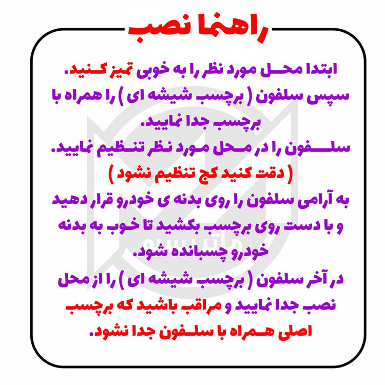 رنگ سفید ابعاد 18 در 30 مقاوم در برابر آب و شستشو همراه با سلفون جهت نصب آسان نصب از داخل و خارج خودرو