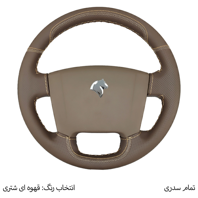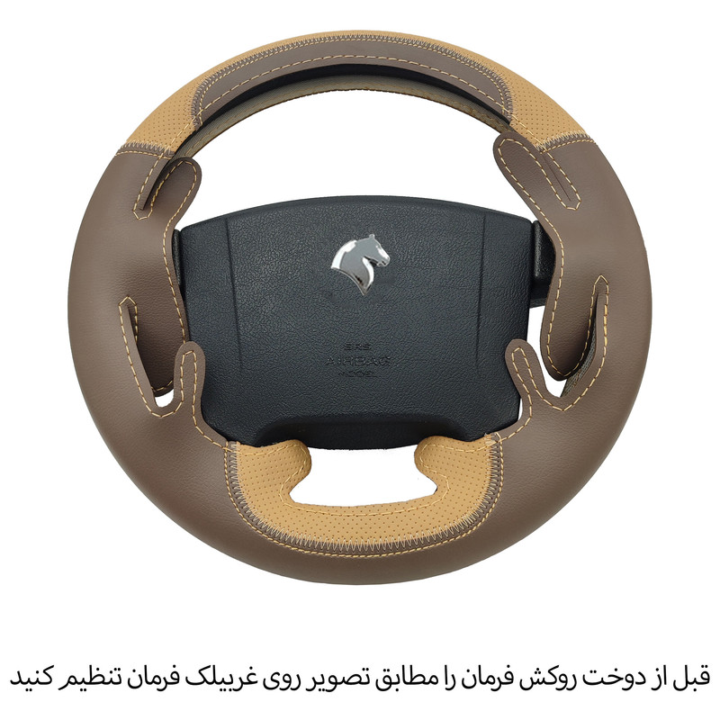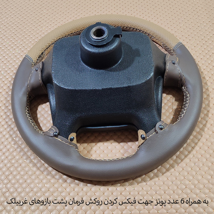 سایر توضیحات: مناسب برای فرمان سمند جدید جنس چرم درجه یک ضد خش ضخامت دو میل دوخت بسیار دقیق مقاوم در برابر تابش خورشید به همراه دو عدد نخ 3 متری شمعی ، ۶ عدد پونز، سوزن و قلاب پشت پارچه جودون پرس شد