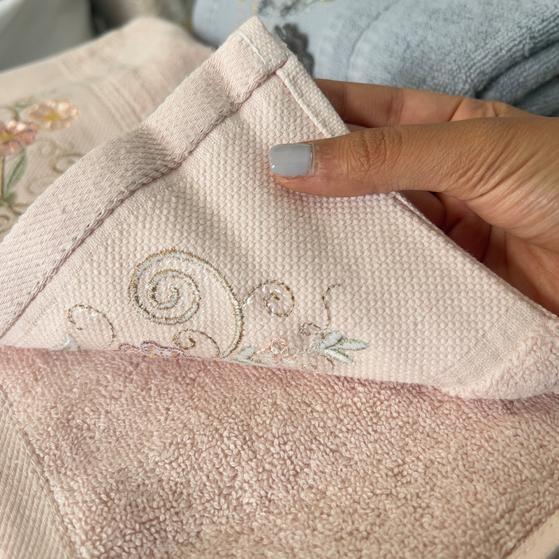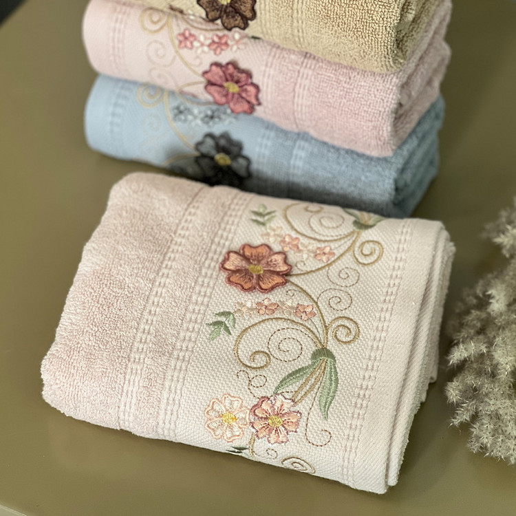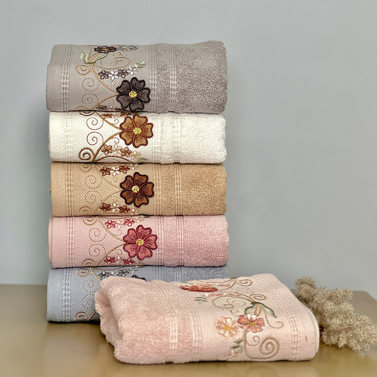 حوله دست و صورت طرح گل پنج پر برجسته سایز 80×40 سانتی متری