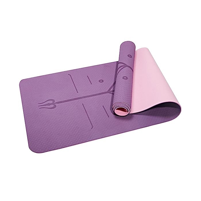 دارای خط کشی جهت انجام حرکات یوگا در چهار رنگ بنفش( کف صورتی) ، سرمه ای ( کف آبی) . سبز تیره (کف سبز روشن ) و قرمز ( با کفی مشکی)