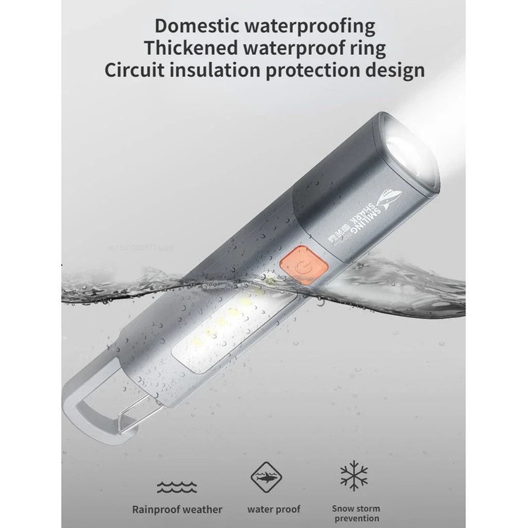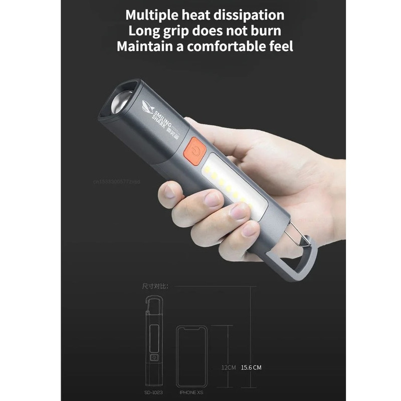 چراغ قوه چراغ قوه دستی Smiling Shark مدل SD-1023 با طرح قلاب عرضه می شود که به راحتی می توان آن را روی چادر یا سایر تکیه گاه ها آویزان کرد. روشنایی مناسب را می توان با توجه به نیاز شما انتخاب کرد. چراغ قوه چراغ قوه دستی Smiling Shark مدل SD-1023 از مواد ABS ساخته شده است که با وزن کم حمل آن آسان است و در هر زمان به راحتی قابل استفاده میباشد.این چراغ قوه دارای روشنایی بالا و LED COB برد طولانی است که نور پرتو قدرتمند و متمرکزی را برای دید بهتر در تاریکی فراهم می کند.این چراغ قوه که با مواد با کیفیت ساخته شده است، بادوام است و برای فعالیت های مختلف در فضای باز مانند کمپینگ، پیاده روی و مواقع اضطراری مناسب است.چراغ قوه دستی Smiling Shark مدل SD-1023 با اندازه جمع و جور و قابل حمل طراحی شده است که حمل و نگهداری را برای ماجراجویی در فضای باز شما آسان می کند.با عملکرد فوکوس قابل تنظیم آن، می توانید به راحتی بین یک پرتو باریک و متمرکز یا یک نور افکن گسترده و پراکنده سوئیچ کنید و با نیازهای مختلف نوری خود را برطرف کنید.چراغ قوه مجهز به طراحی قلاب است که به شما امکان می دهد به طور ایمن به کوله پشتی یا حلقه کمربند خود بچسبانید و دسترسی به آن را آسان میسازد و از گم شدن شما جلوگیری میکند.