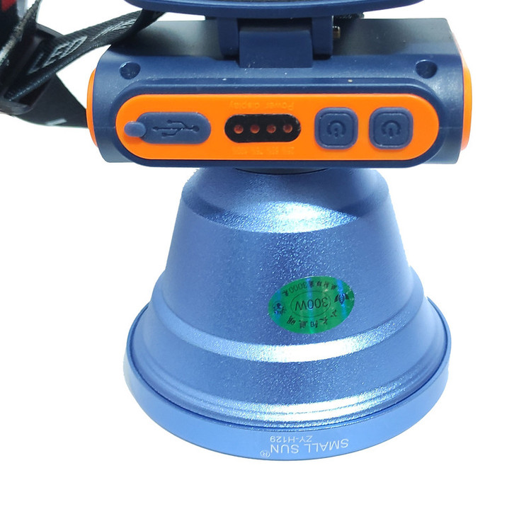چراغ پیشانی اسمال سان مدل ZY-H129 دارای طراحی بدون زوم است و دو دکمه پاور با روکش سیلیکونی سرمه ایی رنگ بزرگ روی آن تعبیه شده که میتوانید بدون مشکل هر زمانی که نیاز به روشن کردن H129 داشتید، آن را بفشارید دو دکمه پاور این چراغ پیشانی یک کاربرد را دارند و فقط برای تنوع در شکل ظاهری شرکت سازنده اقدام به این کار کرده است. در کنار دکمه های پاور چراغ نشانگر شارژ طراحی شده است که با 4 عدد چراغ با اعداد 25، 50، 75 و 100 درصد نمایش داده شده است و درکنار این ها نیز جای شارژ را قرار داده اند که از نوع تایپ سی و دارای روکش ضد گرد و غبار می باشد.
