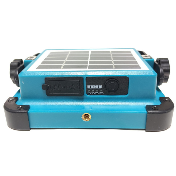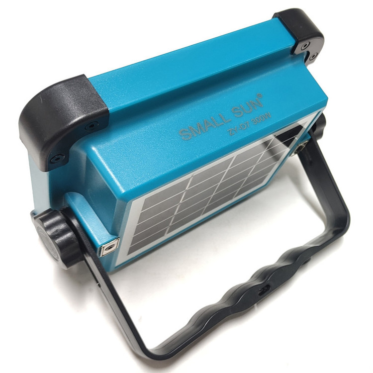 نورافکن شارژی خورشیدی مدل D7 وسیله ایی مناسب برای سفر و کمپینگ است، جنس بدنه این لامپ از پلاستیک محکم ساخته شده ،و دارای نور بسیار قوی و درخشان می باشد. قدرت نور این لامپ 300 وات و دارای 4 حالت نوردهی به ترتیب: مهتابی، آفتابی، ترکیب آفتابی و مهتابی، چشمک زن پلیسی که از حالت چشمک زن آن میتوان برای مواقع اضطراری استفاده کرد. پروژکتور شارژی خورشیدی 300 وات بعد از شارژ کامل آن، می توان به مدت 4 تا 8 ساعت از نور آن لذت برد. لامپ شارژی خورشیدی دارای دسته نگهدارنده، پایه ی قابل تنظیم و همچنین مگنت آهنربایی برای نصب می باشد.نورافکن شارژی خورشیدی مدل D7 بسیار زیبا و خوش حالت طراحی شده است.
