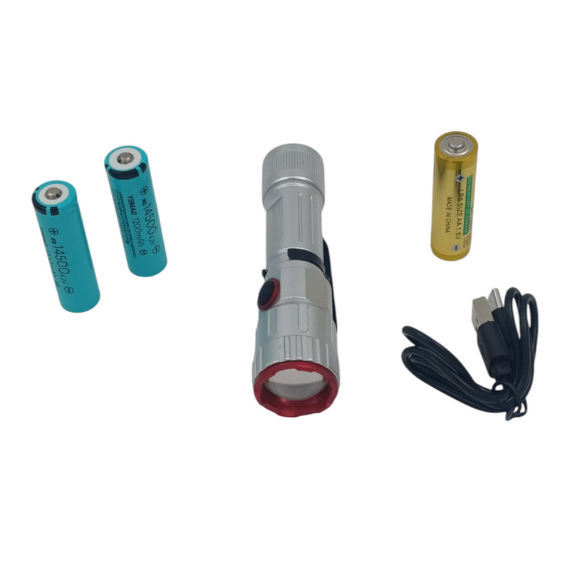 این محصول از آلیاژ آلومینیوم ساخته شده و دارای عملکرد ضد آب روزانه است. مهره های LED TG با روشنایی بالا، کممصرف و بادوام. با عملکرد بزرگنمایی تلسکوپی دارد. از یک باتری لیتیومی 14500 آمپری نوع C قابل شارژ و یک باتری قلمی غیر قابل شارژ استفاده میکند. عملکرد مکش مغناطیسی قوی در دم قرار دارد.مستقیماً به چشمها نگاه نکنید و به آنها نور نتابانید زیرا نور خیلی قوی است.آن را از گرما و آتش دور نگه دارید.آن را از دسترس کودکان دور نگه دارید.لطفا چراغ قوه را حداقل ماهی یک بار شارژ کنید. عملکرد شارژ: USB TYPE-C در حین شارژ، چراغ نشانگر سوئیچ قرمز میشود، نشان دهنده شارژ است. چراغ نشانگر سوئیچ سبز میشود، نشان دهنده پر شدن باتری است