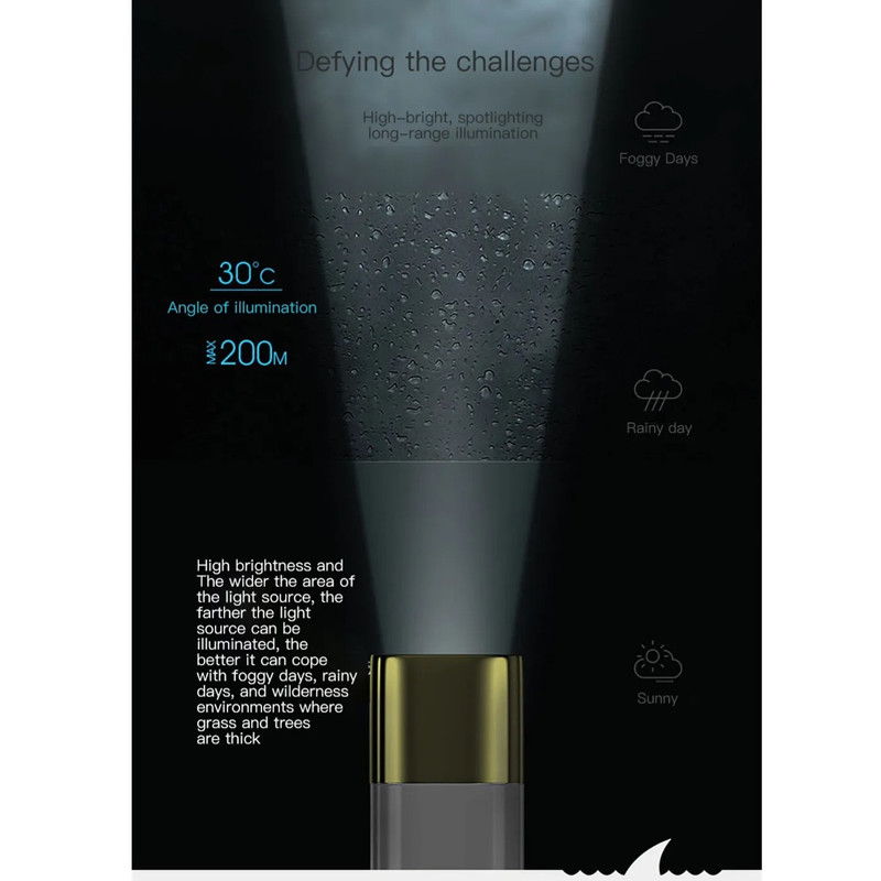 این چراغ قوه دارای طراحی یکپارچه ضد آب است، بنابراین بدون هیچ مشکلی در برابر باد و باران مقاومت می کند. بدنه آن کاملاً مهر و موم شده و مقاوم در برابر آب است و از مدار داخلی محافظت می کند. حتی در روزهای بارانی نیز می تواند روشنایی منظمی داشته باشد.