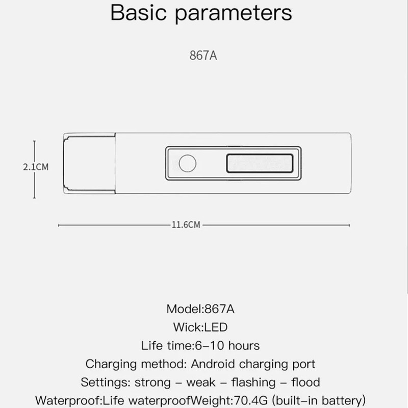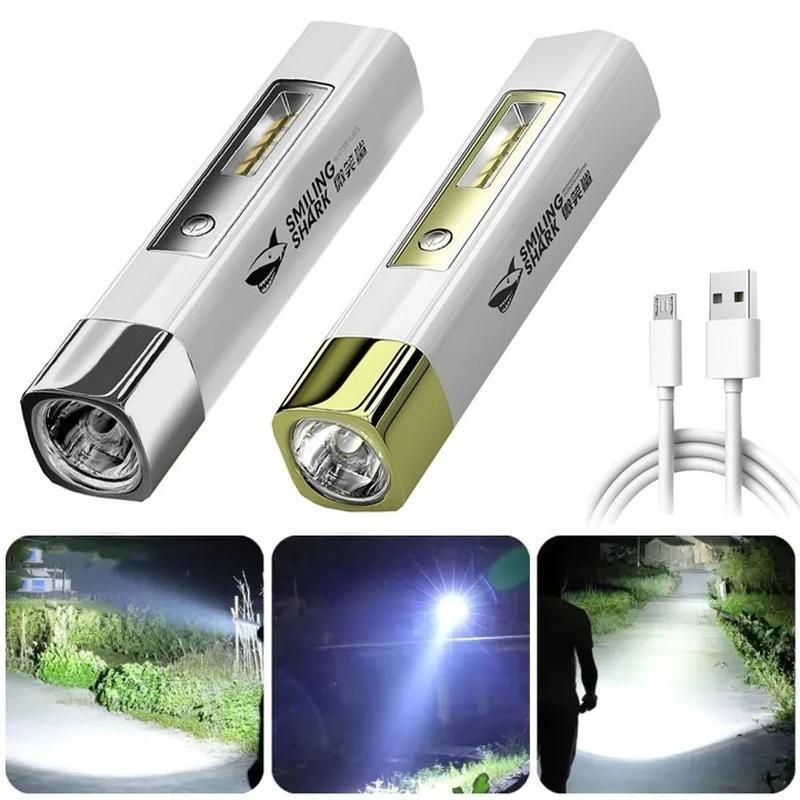 چراغ قوه قابل شارژ دارای باتری لیتیومی داخلی است و با شارژ مستقیم USB قابل شارژ است. عمر باتری آن طولانی است و با انواع دستگاه های شارژ سازگار است. باتری با ظرفیت زیاد می تواند یک پرتو نور طولانی مدت، راندمان شارژ بالا را ارائه دهد و قابل اطمینان تر و ایمن تر است. این چراغ قوه شارژی اسمایلینگ شارک مدل 867A دارای طراحی 4 حالته است. شما میتوانید با یک کلیک روشنایی را تغییر دهید: