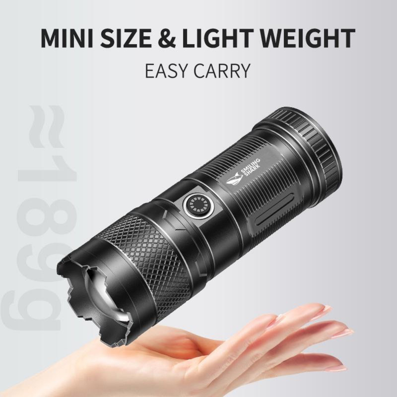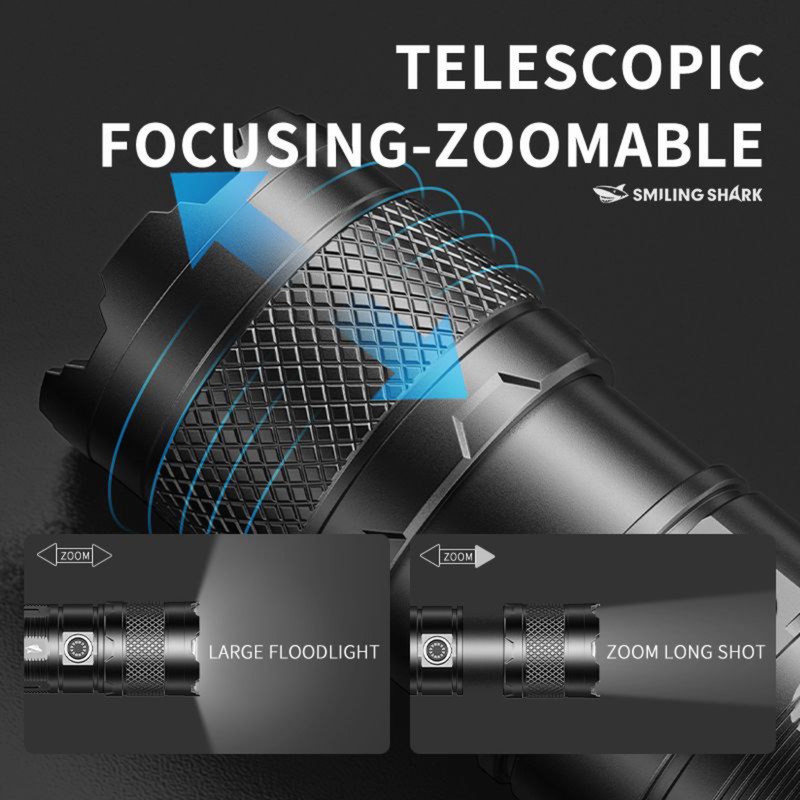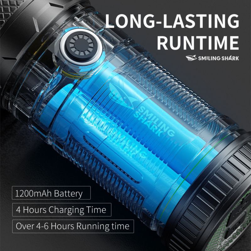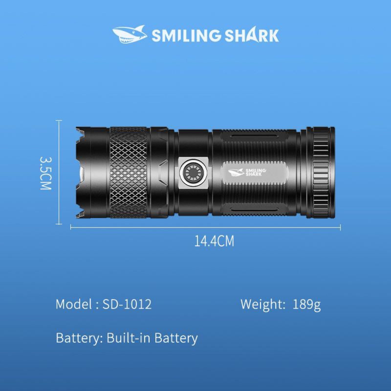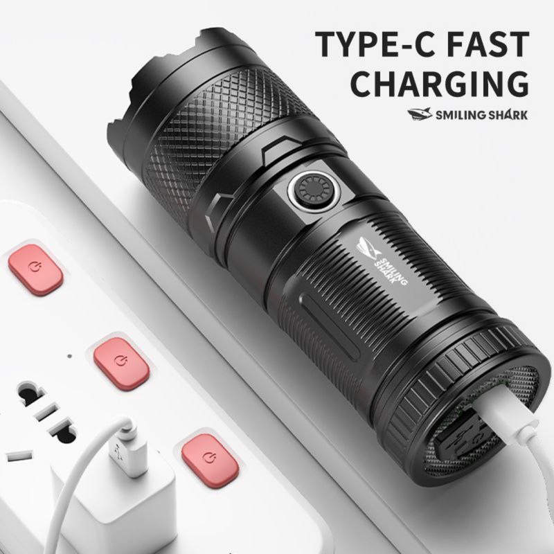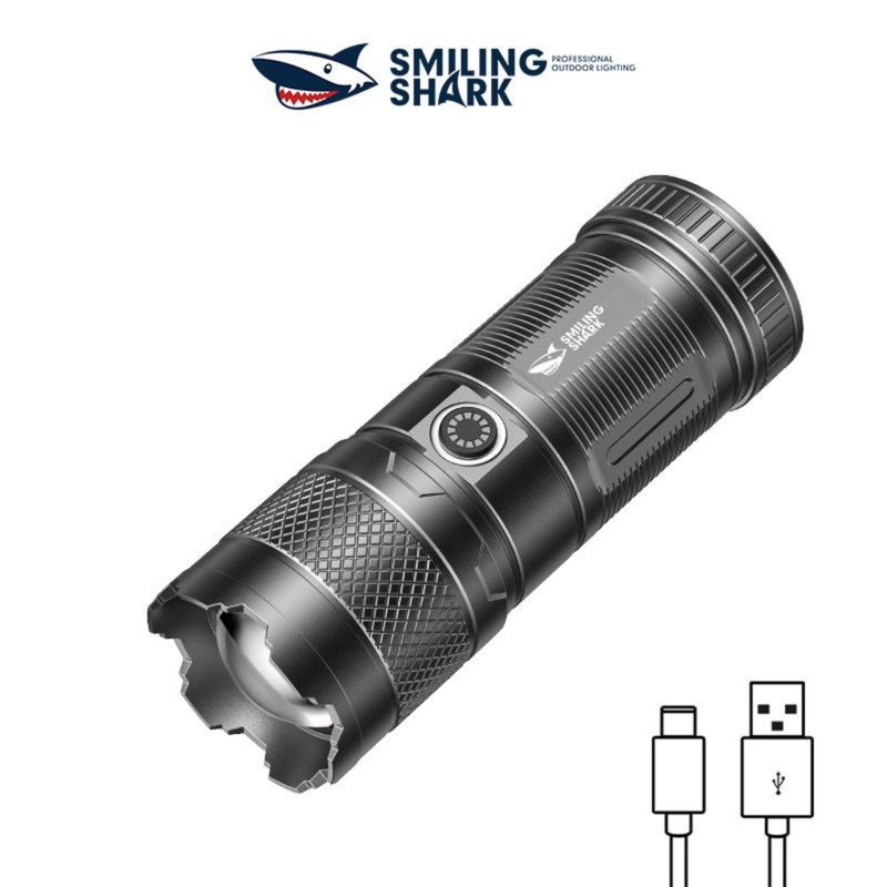 چراغ قوه Smiling Shark مدل SD-10+ یک مدل شارژی با باتری 1500 میلی آمپر ساعت است که از طریق کابل USB TYPE-C شارژ می شود ( این کابل در جعبه محصول موجود است ) . به واسطه چراغ COB به کار رفته در این چراغ قوه , شدت نور آن خوب و به نسبت اندازه آن کاملا قابل قبول می باشد . سه حالت شدت نوری قوی , متوسط و چشمک زن برای SD-0705 قابل انتخاب می باشد همچنین با جابجا کردن سری چراغ قوه , امکان زوم کردن نور و یا پخش حداکثری آن وجود دارد .