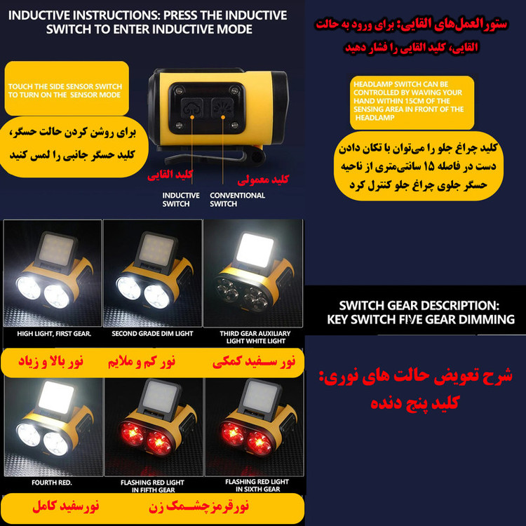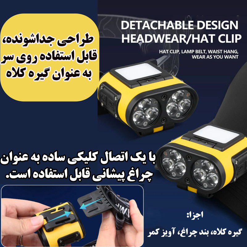 این چراغ پیشانی قدرتمند با هسته نور قوی، برای تابش میدانی مناسب است و شب را مانند روز روشن میکند. علاوه بر این، دارای یک چراغ بزرگ کناری COB با نور ملایم و مناسب است که میتوان از آن بهعنوان چراغ مطالعه، چراغ طعمه، چراغ کار، چراغ تعمیر و نگهداری و یا حتی چراغ کمپینگ استفاده کرد. قابلیت تنظیم نور و فوکوس، به شما امکان میدهد تا نور را بر اساس نیاز خود تنظیم کنید و از دیدی واضح و روشن در هر شرایطی بهرهمند شوید.