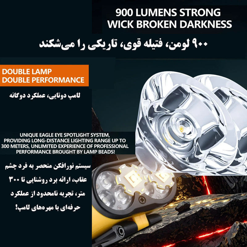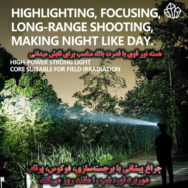 این چراغ پیشانی قدرتمند با هسته نور قوی، برای تابش میدانی مناسب است و شب را مانند روز روشن میکند. علاوه بر این، دارای یک چراغ بزرگ کناری COB با نور ملایم و مناسب است که میتوان از آن بهعنوان چراغ مطالعه، چراغ طعمه، چراغ کار، چراغ تعمیر و نگهداری و یا حتی چراغ کمپینگ استفاده کرد. قابلیت تنظیم نور و فوکوس، به شما امکان میدهد تا نور را بر اساس نیاز خود تنظیم کنید و از دیدی واضح و روشن در هر شرایطی بهرهمند شوید.