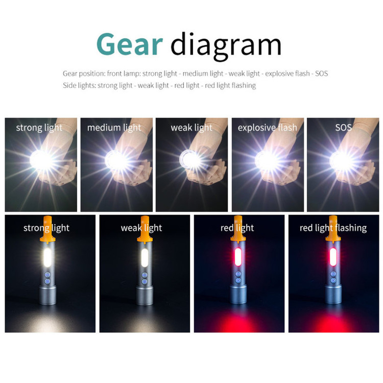 【چند منظوره چراغ قوه در فضای باز 】Wheter که شما در حال کمپینگ و یا نیاز به روشنایی محیط، چراغ قوه ما می تواند به عنوان یک چراغ قوه قوی و نور کار عمل می کنند، نور اصلی پشتیبانی از تنظیمات 5 سرعت از جمله قوی، متوسط، کم نور، فلش پشت سر هم و SOS، نور جانبی پشتیبانی از تنظیمات 4 سرعت، نور قوی، نور متوسط، نور قرمز و نور پشت سر هم فلش بهره برد.