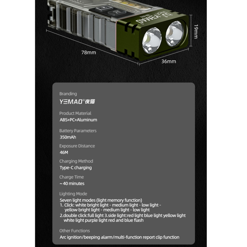 چراغ قوه فندکی یئماو مدل YM-M42 با نور چند رنگ