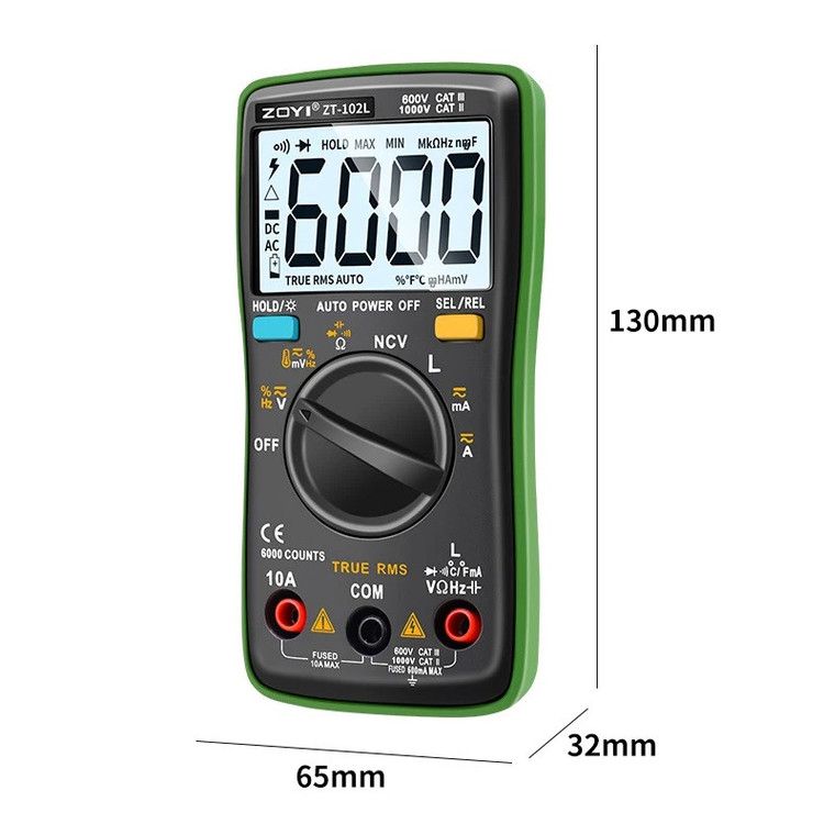 - اندازه گیری سلف تا 60.00H - NCV، تابع تست ولتاژ غیر تماسی - دارای قابلیت اندازه گیری واقعی True RMS - قابلیت اندازه گیری دیوتی سایکل از 1 تا 99 درصد - دارای قابلیت خاموش شدن خودکار بعد از 15 دقیقه