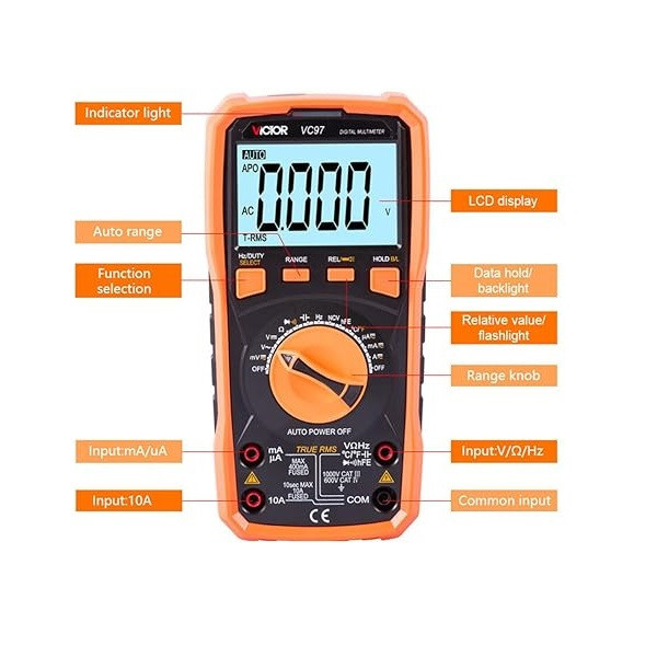 نکات استفاده: همیشه از رنج مناسب برای اندازهگیری استفاده کنید. از تماس با ولتاژهای بالا هنگام کار جلوگیری کنید. دستگاه را در محیط خشک و دمای مناسب نگهداری کنید.