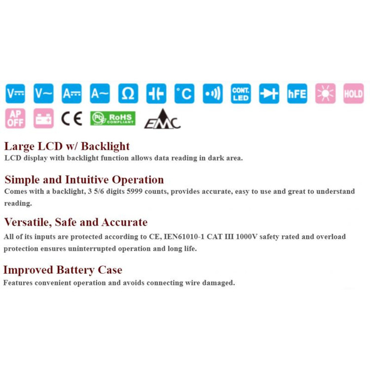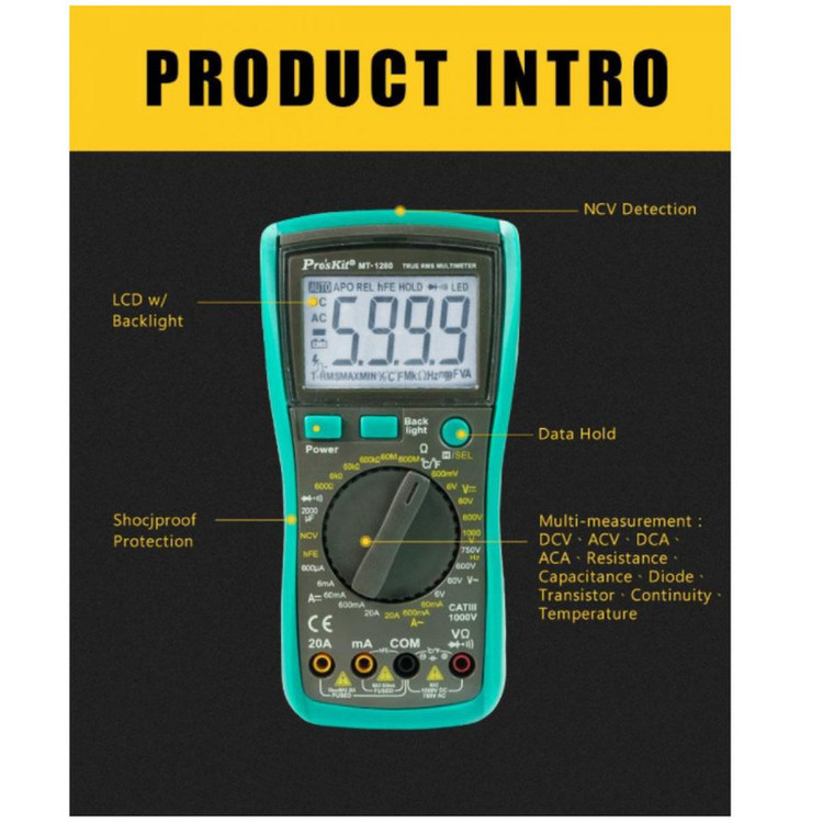 مولتی متر دیجیتال سلکتوری 1/2 3 دیجیت دارای نور صفحه نمایش دارای دماسنج دارای HOLD