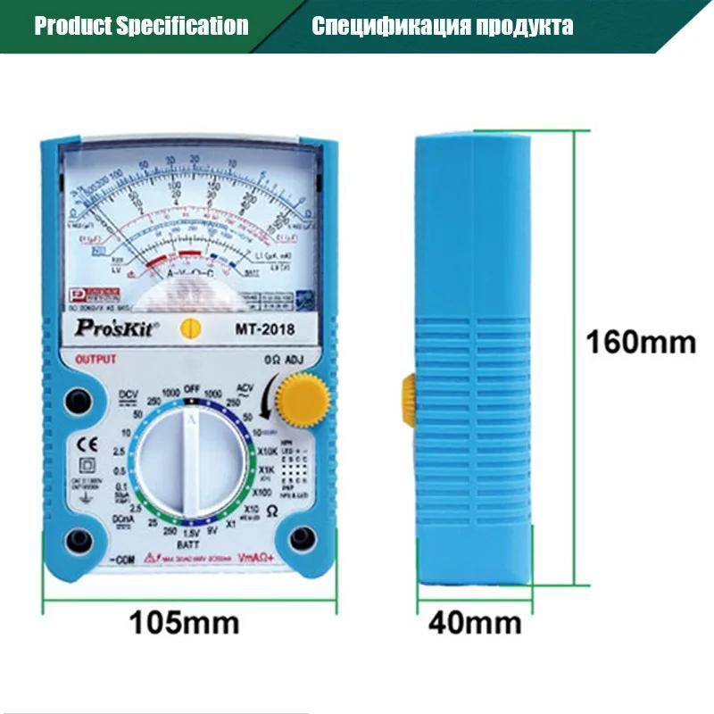 1 x Pro'skit MT-2018 Analog Multimeter 2 x Test leads (95cm-cable) 1 x English user manua