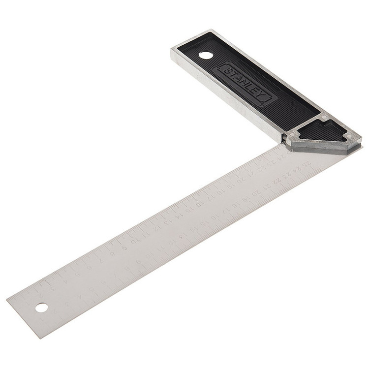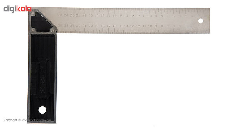 گونیایی که مشاهده میکنید یکی ابزارهای کارگاهی بوده که سایز متوسطی دارد. یکی از ابزارهای اندازهگیری طول و یافتن زاویهی 90 درجه گونیا است. این ابزار در بسیاری از کارگاهها مورد استفاده قرار میگیرد. این گونیا ساختاری تمام فلزی دارد و از یک تیغه و یک دسته تشکیل شده است. طول تیغهی این گونیا حدود 296 میلیمتر است و از استحکام بالایی برخوردار است. این تیغه ضخامت قابل توجهی دارد و اعداد برحسب سانتیمتر و اینچ روی آن حک شدهاند. در یک سمت تیغه میتوان مقادیر اندازهگیری شده را برحسب سانتیمتر و در هر دو لبهی آن اندازهگیری کرد و در سمت دیگر تیغه در هر دو لبه مقادیر بر حسب اینچ قرار دارند. طول دستهی این ابزار اندازهگیری نیز 18.3 سانتیمتر است. این گونیا را شرکت (Stanley) «استنلی» تحت عنوان مدل «E-46534» به بازار عرضه کرده است.