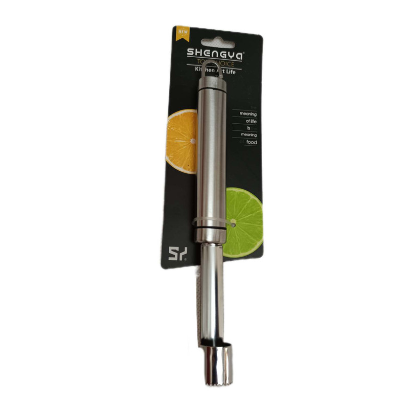 هسته گیر شنگیا یکی از جدیدترین های برند شنگیا همانطور هم روی جلد نیز NEW نوشته شده است.با دسته های استیلو تیغه استیل بسیار مرغوب و برنده ساخته شده است.طراحی این محصول کمک میکند کار با آن ساده باشد وبه مچ دست فشار نیاورد که به راحتی از آن میشود استفاده کرد و طراحی بسیار جذاب آن دکوراسیون آشپزخانه شما را جذاب خواهد کرد.از این محصول میتوان برای هسته گیری سیب و میوه ها استفاده کرد.در ضمن چون خوش دست هست فضای زیادی را در آشپرخانه نمیگیرد درعین حال برندگی بسیار بالایی دارد.