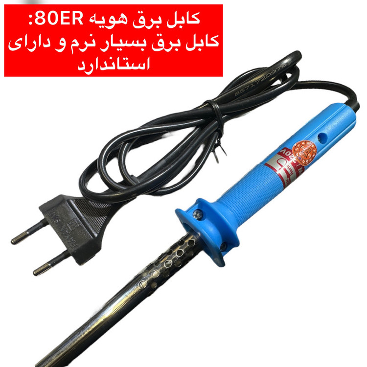 سایر توضیحات: هویه 80 وات قلمی ایران هویه ولتاژ کاری تا حداکثر 240 ولت و نوک نسوز و قلع اندود شده که به راحتی قلع را به خود می گیرد و ذوب می کند
