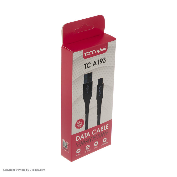 ل TCA 193 برند تسکو 1 متر طول دارد و رشتههای مسی آن با استفاده از پارچه کتان بافتهشده پوشانده شدهاند. این روکش مقاومت زیادی دارد و رشتههای مسی داخل کابل را در برابر قطعشدن براثر کشیدن ، خم شدن و گره خوردن مقاوم کرده است؛ کانکتورهای به کاررفته در این کابل TCA 193 بسیار مقاوم هستند. در یک سمت این کابل یک کانکتور اندروید و در سمت دیگر آن یک کانکتور USB وجود دارد.