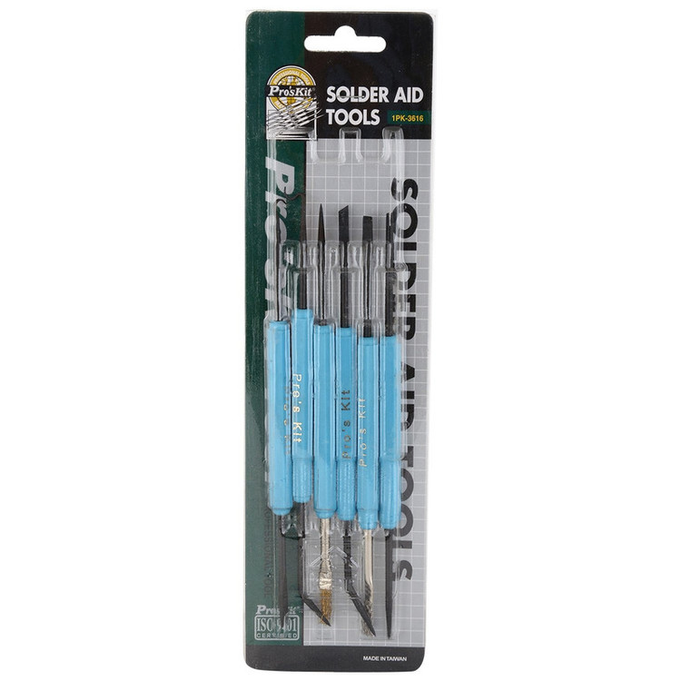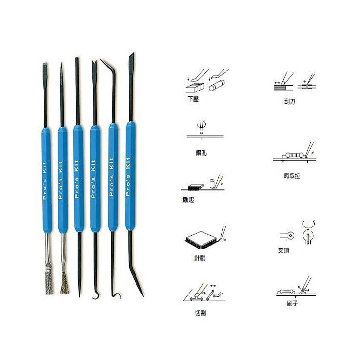 ابزار لحیم کاری دارای 6 عدد انبر در اشکال مختلف فلزی با دسته پلاستیکی