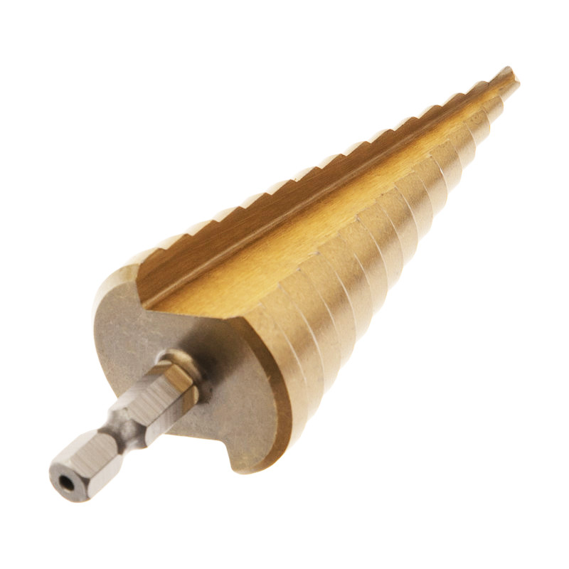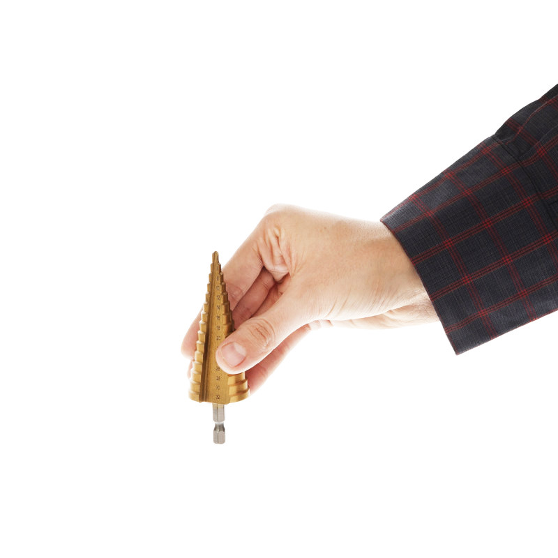 مته مخروطی یا مته پلهای یکی از مته های پر کاربرد برای سوراخ کاری فلزات، چوب و... است. این مته شکلی شبیه درخت کاج دارد و به همیند علت به آن مته کاجی هم میگویند. روی این مته پلههایی وجود دارد که همان سایزبندی مته را نشان میدهد و از اندازه ک به زیاد درجه بندی شده است و در واقع کارایی چند مته با سایزهای مختلف را دارد. اعداد حکاکی شده روی مته نشان دهنده قطر سوراخ است. این محصول یک عدد مته 15 پلهای سایز 4 تا 32میلیمتر است که سوراخ های متعددی به قطر 4 تا 32 میلیمتر در کار ایجاد میکند این کالا از جنس فلز HSS بوده و برای سوراخ کردن انواع فلز استفاده خواهد شد. از ویژگی این محصول داشتن دنباله شش ضلعی در قسمت ساقه مته است که امکان استفاده در پیچ گوشتی های شارژی که فاقد سه نظام هستند را امکان پذیر میکند