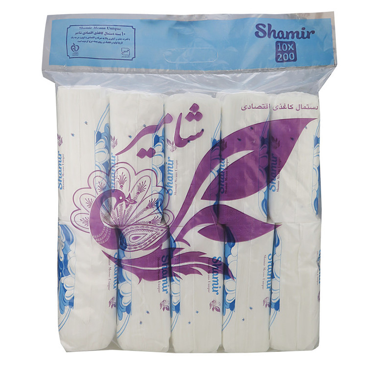 دستمال کاغذی ۱۰۰ برگ دولایه شامیر مدل 01 بسته ۱۰ عددی