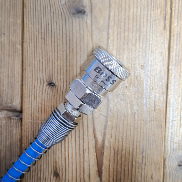 ابتدا سر نری کوپلینگ را به پمپ باد وصل کرده و به سر دیگر شلنگ وسیله مورد نظر (بکس بادی.میخکوب .منگنه کوب .و...)وصل کرده و استفاده می نماییم.