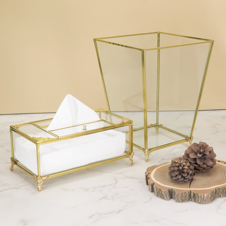 ست سطل و جای دستمال کاغذی مدل شیشه ای طرح 01