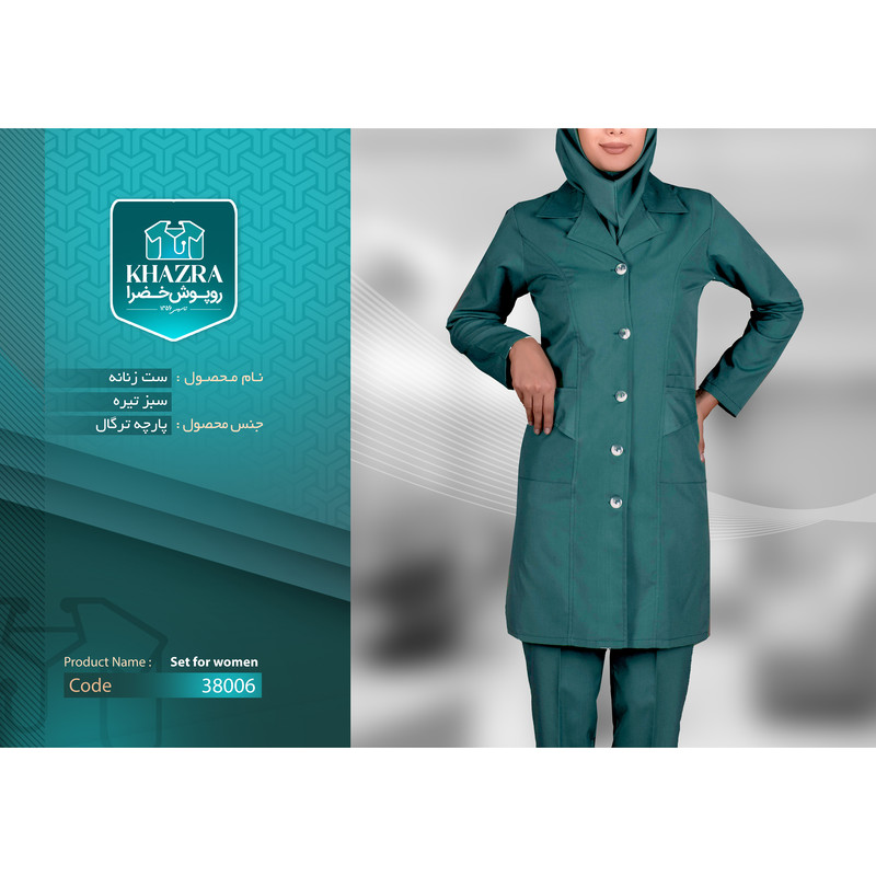 ست روپوش و شلوار و مقنعه اتاق عمل زنانه خضرا مدل یاس کد 38006