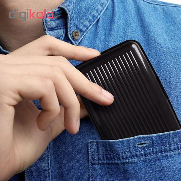 بدنه دارای روکش آلومینیومی می باشد دارای ۷ اسلات برای قرار دادن کارت اعتباری ، کارت ویزیت ،کارت شناسایی ، اسکناس و .... گنجایش بین 10 تا 12 عدد کارت اعتباری طراحی شده بصورت یکطرف صاف و طرف دیگر شیار دار ایمن در برابر کارت خوان های RFID