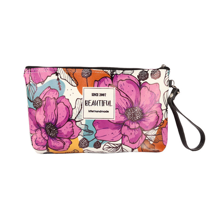 کیف آرایشی گلدار کیفت - ضد آب - قابل شستشو - جنس : چرم مصنوعی - سایز : 25x14 سانتیمتر - زیپ روان ، محفظه کیف مناسب انواع لوازم آرایشی پالت سایه، کرم پودر و... میباشد. - با افتخار ساخت ایران