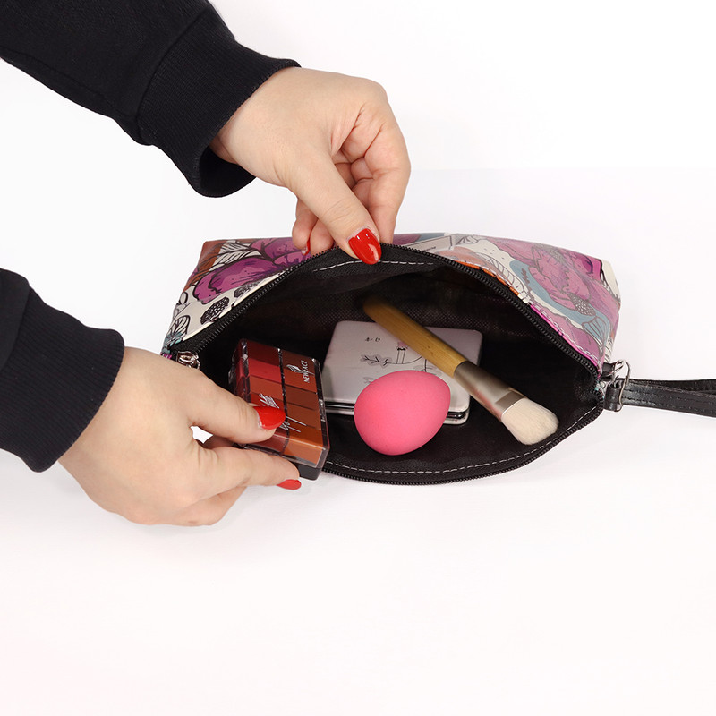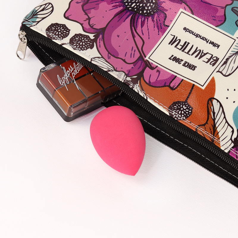 کیف آرایشی گلدار کیفت - ضد آب - قابل شستشو - جنس : چرم مصنوعی - سایز : 25x14 سانتیمتر - زیپ روان ، محفظه کیف مناسب انواع لوازم آرایشی پالت سایه، کرم پودر و... میباشد. - با افتخار ساخت ایران