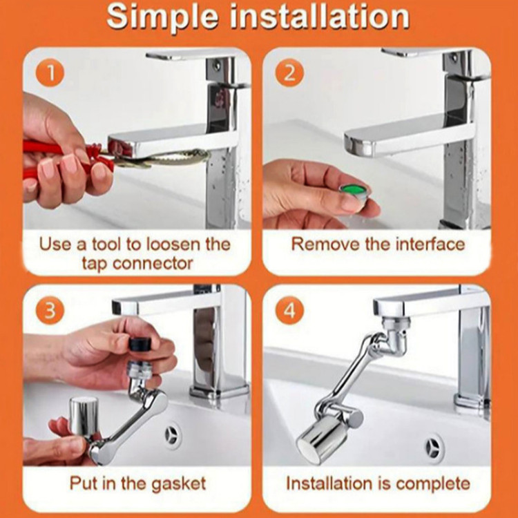نصب بسیار راحت، سایز قطر این سری شیر آب برای تمامی شیرهای روشویی و آشپزخانه رایج بازار ایران مناسب میباشد.