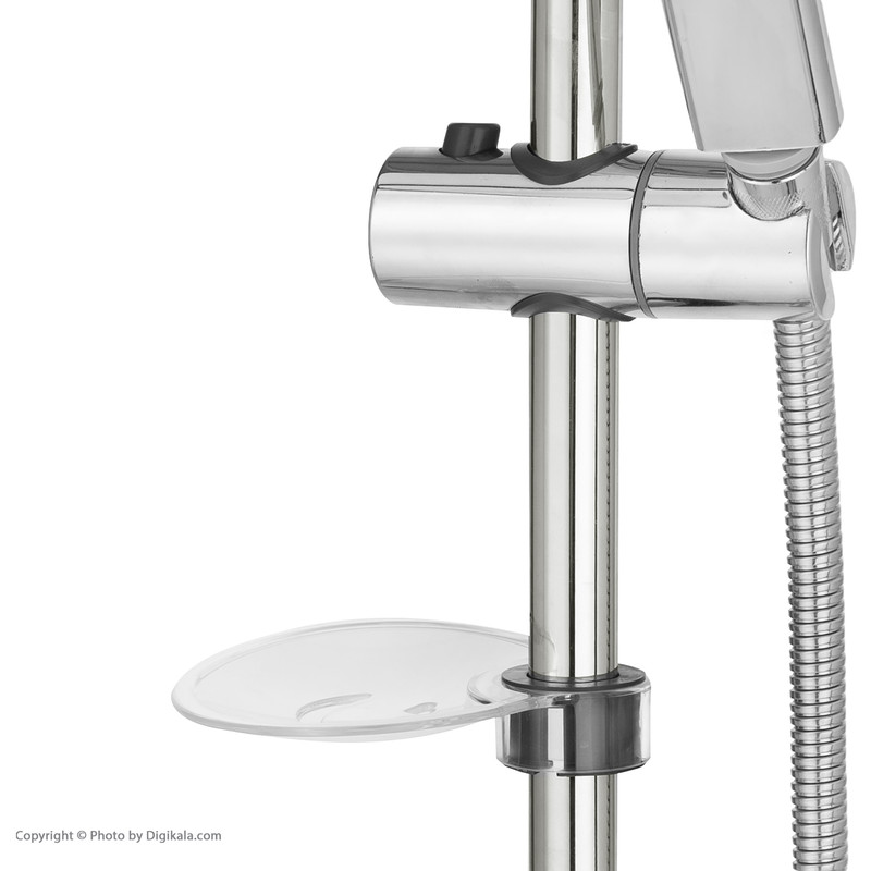 مجهز به منافذ پلیمری که رسوب زدایی را راحت میکند، تعداد زیاد نازل اب جهت پخش مناسب آب، دارای جاصابونی، شلنگ استیل ریزبافت، قابلیت تنظیم ارتفاع گوشی، دارای پیچ و رول پلاک برای نصب