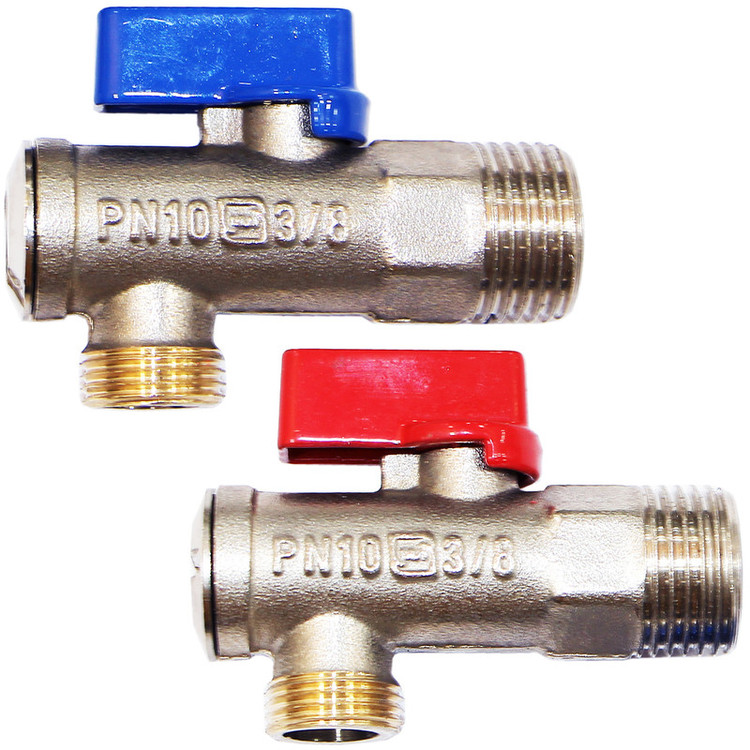 ۲ عدد ( دسته آبی و قرمز ) سایز : 3/8 مدل: فیلتر دار استاندارد برنجی، سایز این شیر پیسوار 1/2 به 3/8 می باشد.
