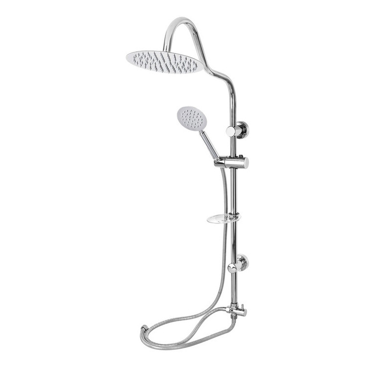 گوشی و سردوش استیل، سه راه کمر تلفنی فلزی، شلنگ استیل ریز بافت، جاصابونی، پایه های با پوشش نیکل کروم، آسانسوری دکمه ای قابل تنظیم، شلنگ رابط دوش، لوله استیل ضد زنگ، واشر های اب بندی و پیچ و رول پلاک. آچار آلن جهت باز و بست راحت.