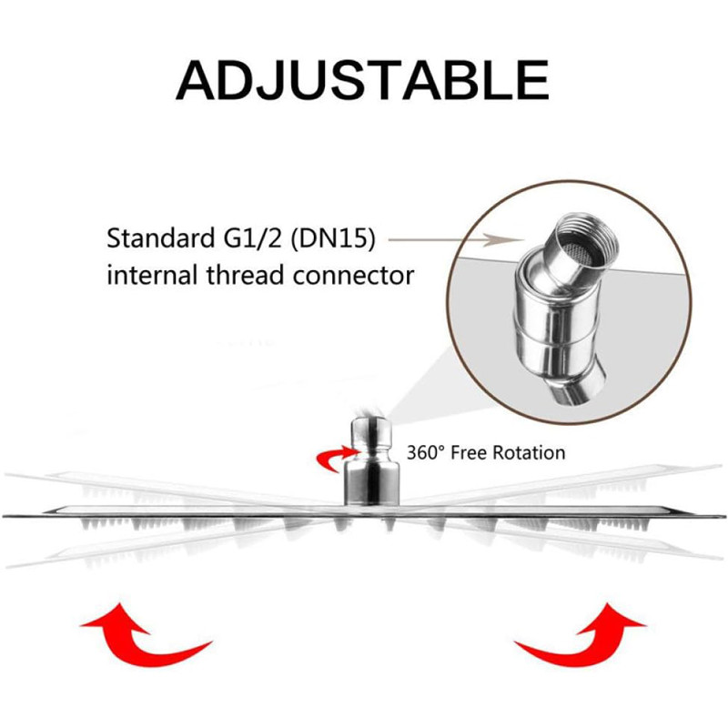 مجهز به منافذ پلیمری که رسوب زدایی را راحت میکند، تعداد زیاد نازل اب جهت پخش مناسب آب، دارای جاصابونی، شلنگ استیل ریزبافت، قابلیت تنظیم ارتفاع گوشی، دارای پیچ و رول پلاک برای نصب